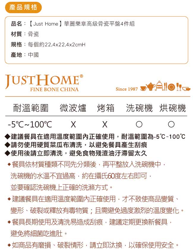 所以我個人對【Just Home】華麗樂章高級骨瓷8吋餐盤4件組的評比如下